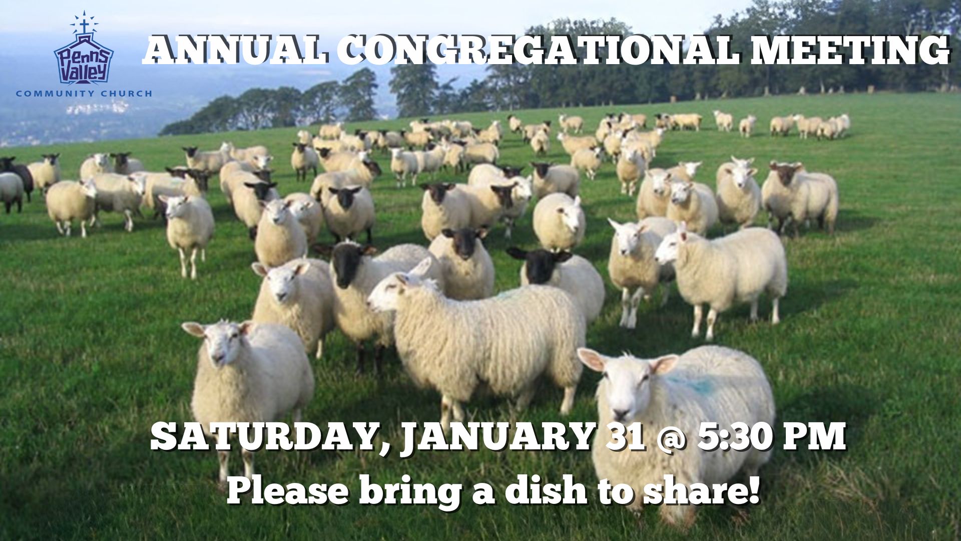 Save the date for Saturday, January 31st and plan to join us for our Annual Congregational Business Meeting. Everyone is welcome but we strongly encourage our members to attend as we cast vision for 2026, vote on Elders and a new budget. We will meet at the Old Gregg School at 5:30pm and share dinner together before moving into the business portion of the meeting. Please bring a dish to share!