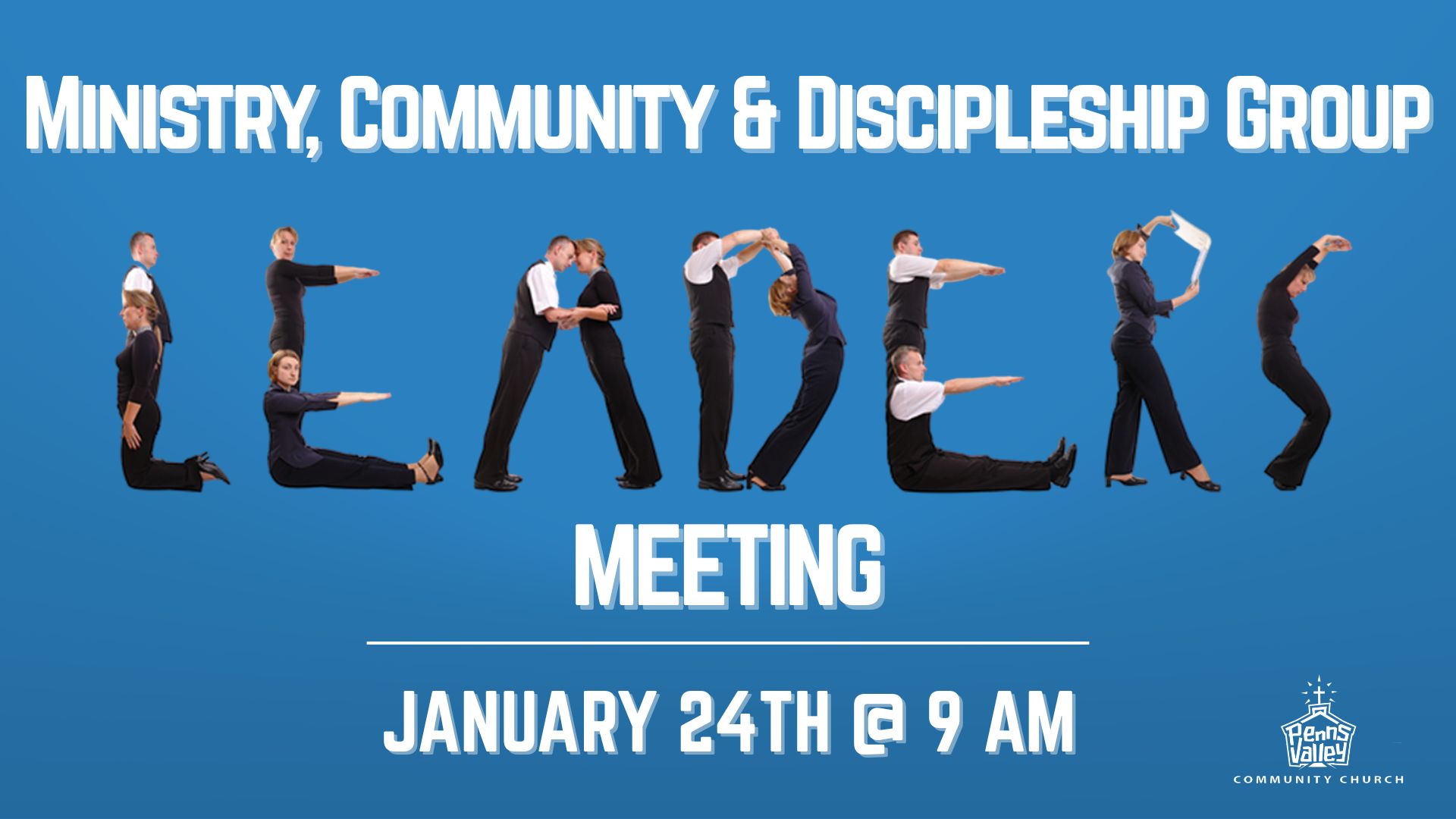 If you are a leader at PVCC, whether you are a Ministry Head, Community Group Leader or a Discipleship Group Leader, please plan to attend an interactive meeting on Saturday, January 24th from 9am-11am in the Youth Center. We have some exciting updates for you and we want to spend time encouraging one another. Please make this a priority in your schedule as you plan the month of January!