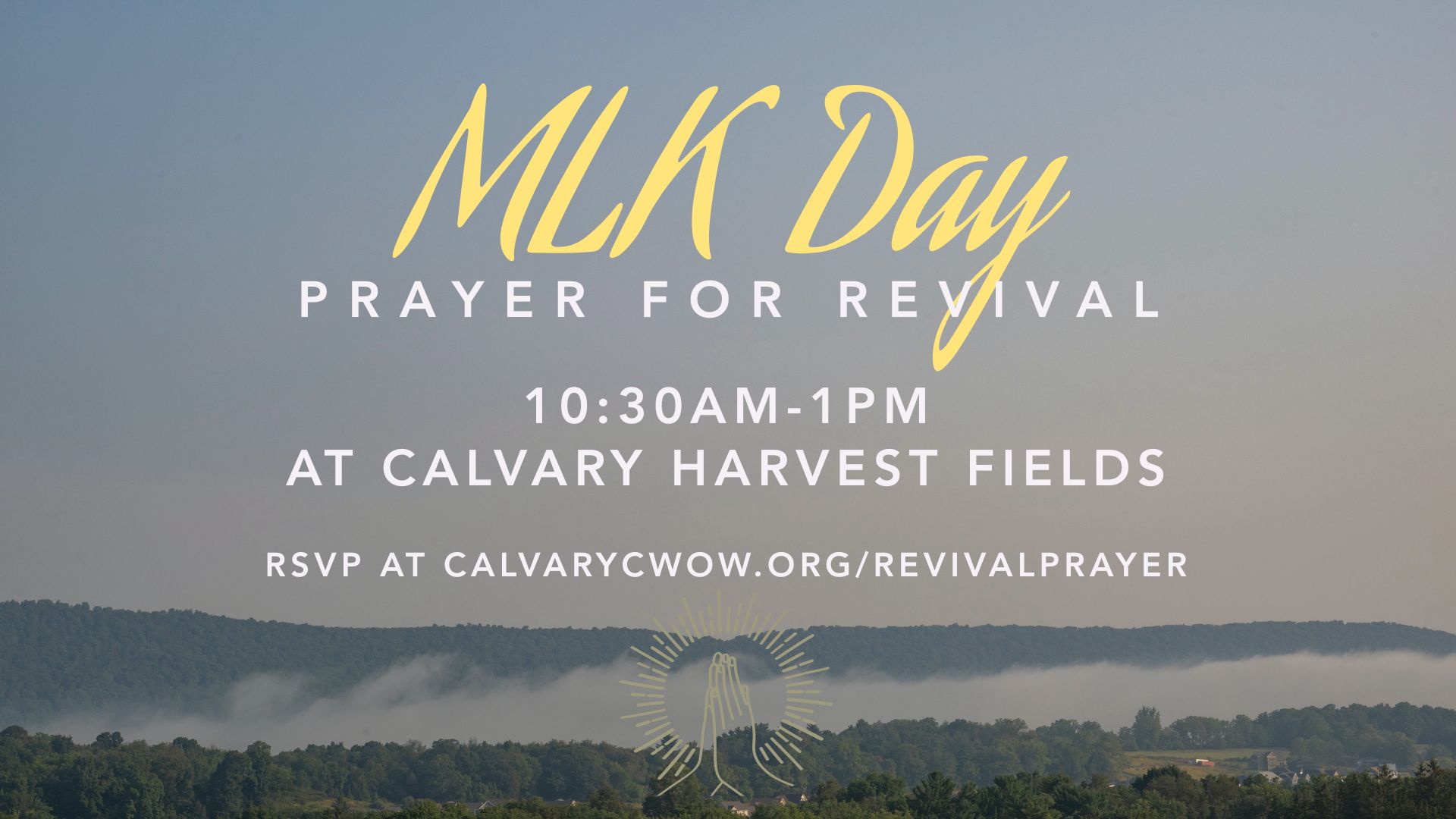 For the last few years, on Martin Luther King day, Calvary Harvest Fields has hosted a morning of prayer and worship at Calvary Harvest Fields in Boalsburg. Pastors, lay-leaders, and people passionate about prayer from Altoona, Lewistown, Penns Valley, Bellefonte, State College and everywhere in between have been part of this event. Please consider joining us this year! The event will take place on Monday, January 19th at Calvary Harvest Fields. We will meet at 10:30 am for prayer and worship, with a great lunch to follow. This is not just for pastors and staff. It’s for anyone with a passion to pray for revival. The more the better! An optional luncheon will follow but please register here if you plan to stay. And, feel free to invite others to come with you!