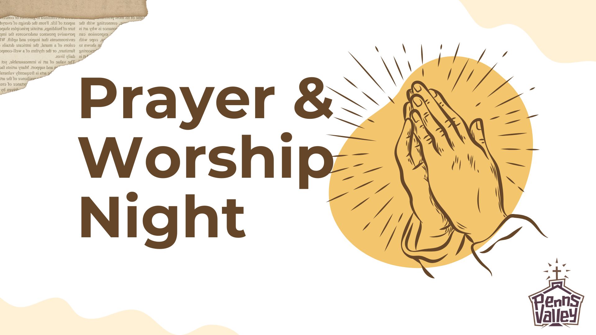 Home Events - Penns Valley Community Church Events Prayer & Worship Night Prayer & Worship Night Join us as we seek the Lord together through prayer and worship! + Add to Google Calendar + iCal / Outlook export Date Jan 20 2026 Time 7:00 pm - 8:00 pm Location Old Gregg School Community Center 106 School Street Spring Mills, PA 16875 Category Events Share this event